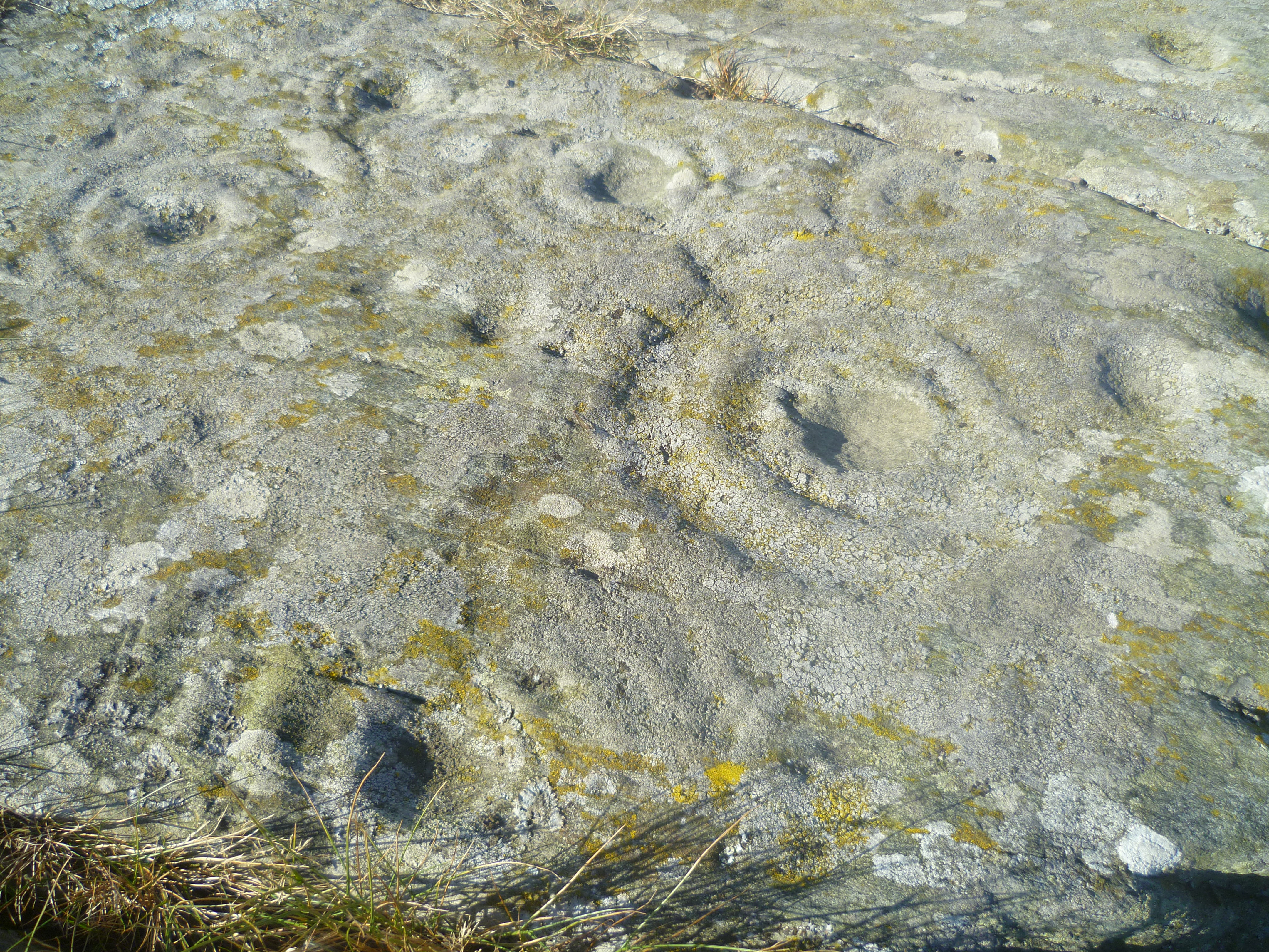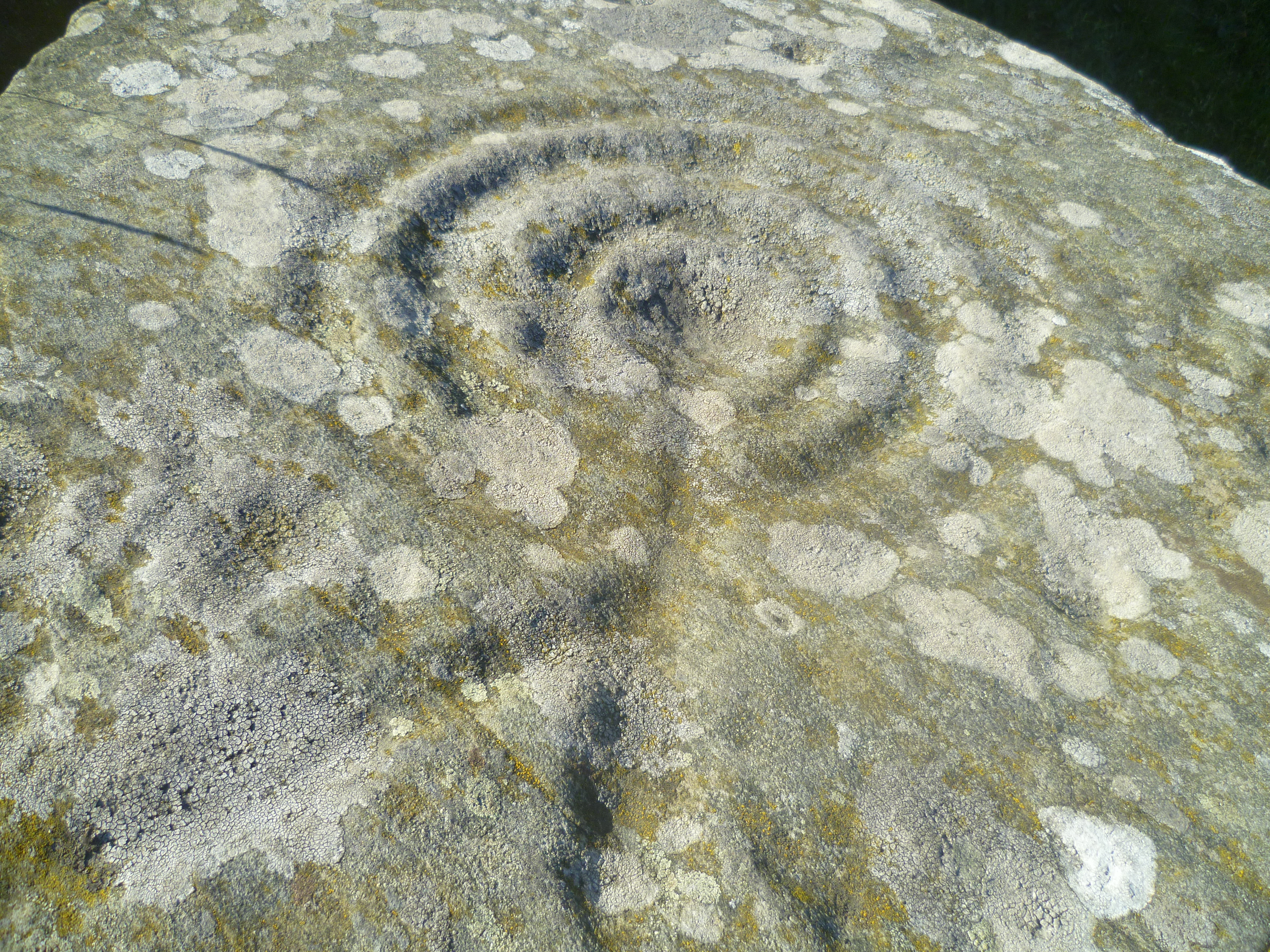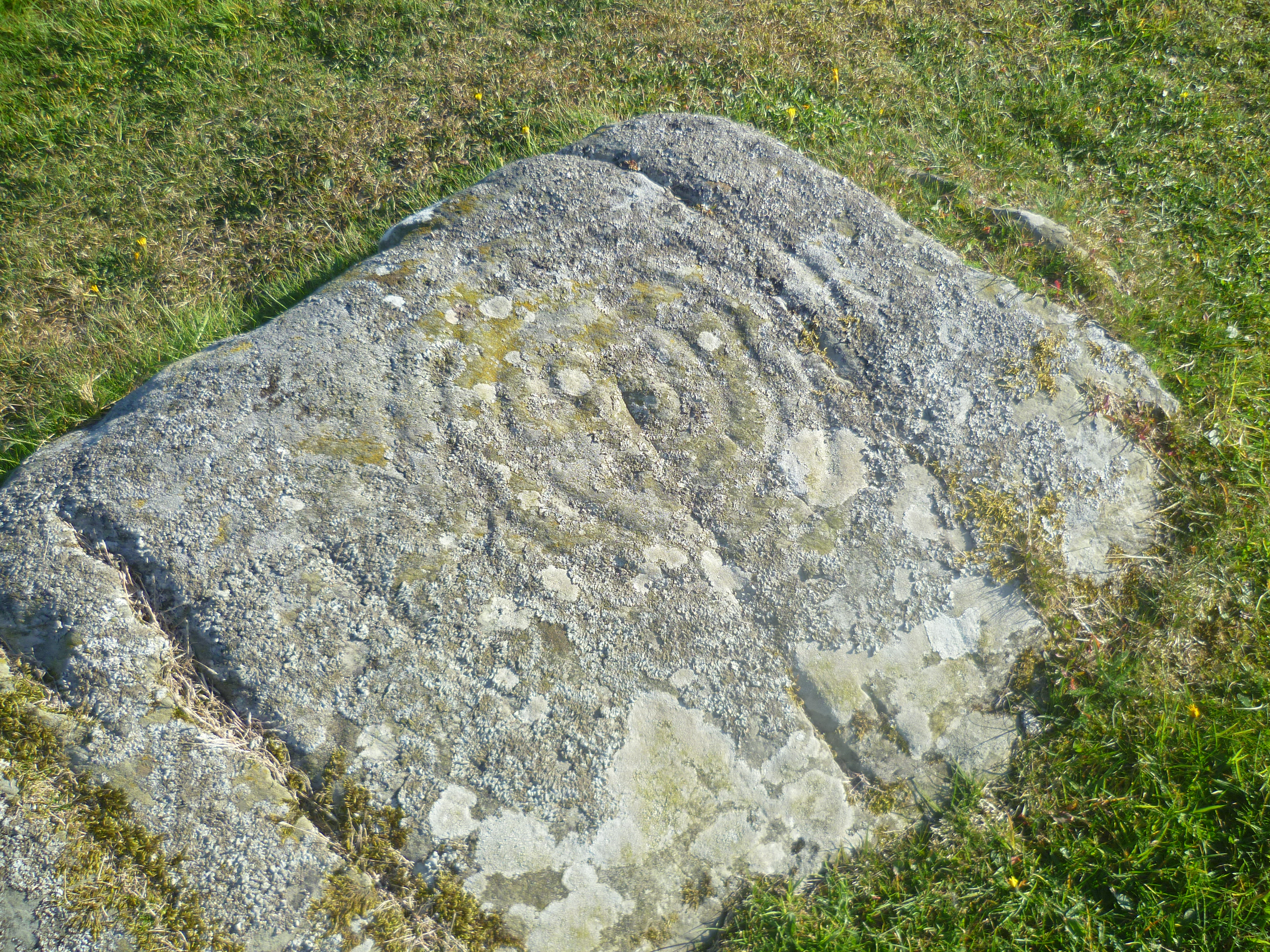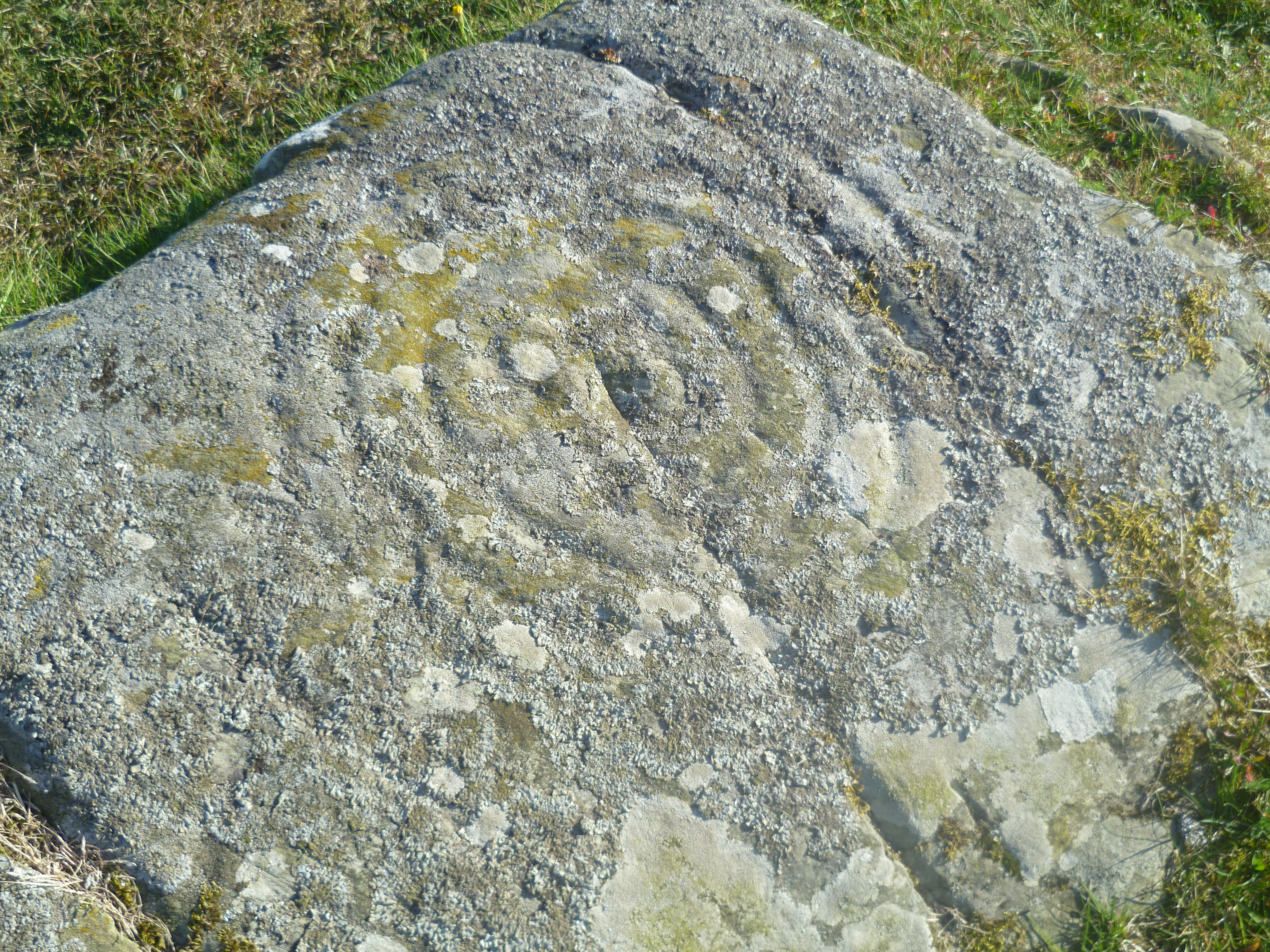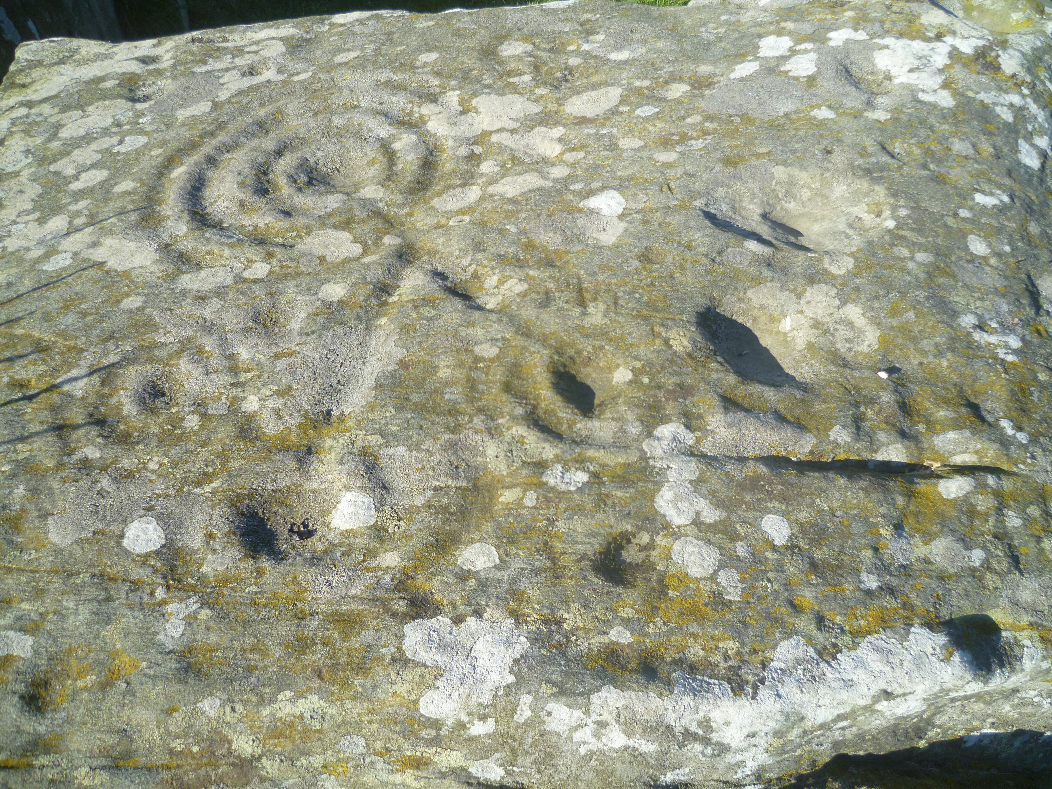 Drumtroddan Cup and Ring Stones are part of tradition of pre-historic rock carvings that can be found in the Celtic lands of north-west Europe. Their purpose and function are a mystery and they can range in dates from 3,500 BC to 10,000 BC. There are two rocky outcrops within a short distance of each other and a third nearby on this site. The markings are predominantly spirals, cups and rings. They were clearly seen as important symbols as they must have taken a considerable amount of time and skill to carve. The area in which they stand is part of an important pre-historic landscape and these carving could well be linked to the Drumtroddan Standing Stones that are 438 yards (400m) to the south-east.